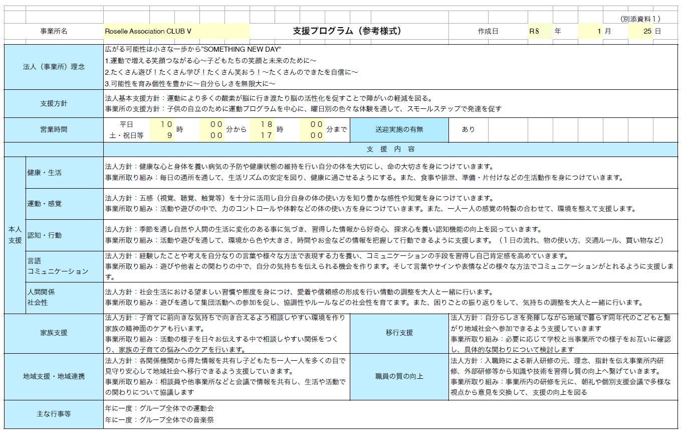 | 事業所名 | ローゼルこどもDayさぽーとV |